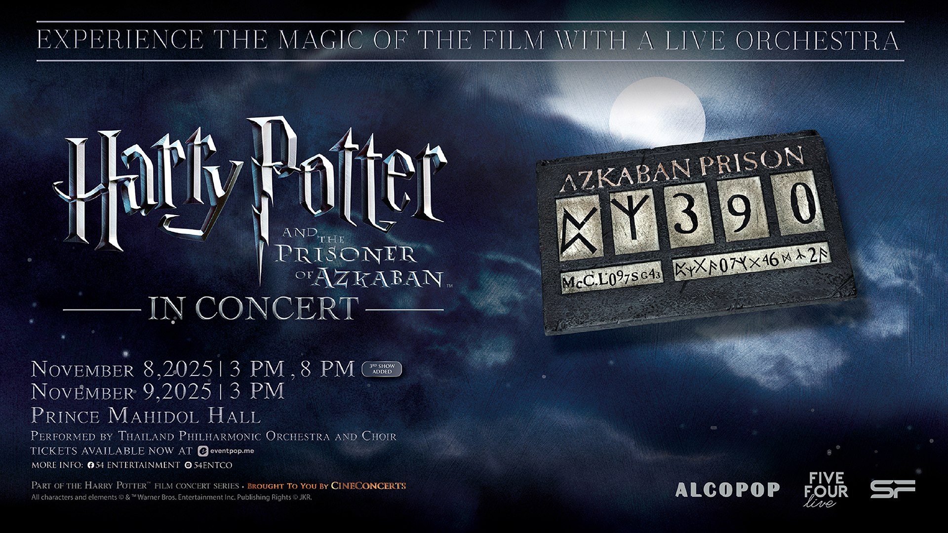 เตรียมพบกับโลกเวทมนตร์และเหล่าพ่อมดที่คุณรักได้อีกครั้งในรูปแบบการฉายภาพยนตร์เต็มทั้งเรื่องพร้อมดนตรีประกอบบรรเลงสดในคอนเสิร์ต “Harry Potter and the Prisoner of Azkaban™ in Concert” ดื่มด่ำไปกับเรื่องราวการผจญภัยสุดระทึกของ แฮร์รี่ พอตเตอร์ บนจอขนาดยักษ์พร้อมเสียงดนตรีผลงานของ John Williams จากวง Thailand Philharmonic Orchestra และ Thailand Philharmonic Choir